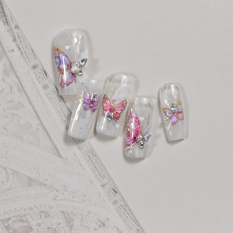 - PREMIUM STEREO RELIEF DESIGN: The unique 5D relief process is used to create a concave and convex three-dimensional effect, the finely crafted pink butterfly pattern is lifelike and glittering, which is more layered than ordinary flat stickers, adding a delicate and gorgeous spring and summer atmosphere to the nails.