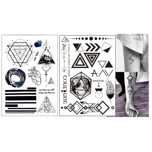 - 2 sheets of temporary triangle tattoos and graphic tattoos.