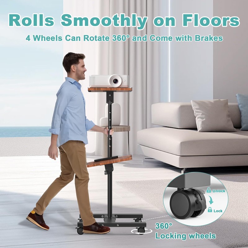 - Rolling & Easy Portability: Mobile Projector Stand with 4 Silent 360° Rotatable Casters for easy movement. Each castor has an individual brake and can be fixed in any desired position. Perfect for offices, classrooms, lecture halls, trade shows, and more!
