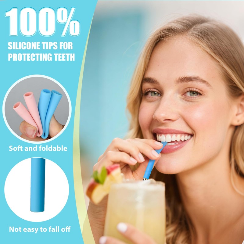 - SAFE SILICONE TIPS FOR YOUR LIPS: Each straw has a silicone tip—soft cushioning to shield lips and teeth from hot/icy drinks. Ideal for kids, adults, or anyone with dental sensitivity, these BPA-free tips add a colorful twist and extra comfort. Say goodbye to burnt lips or chipped teeth and hello to a safer, more enjoyable sipping.