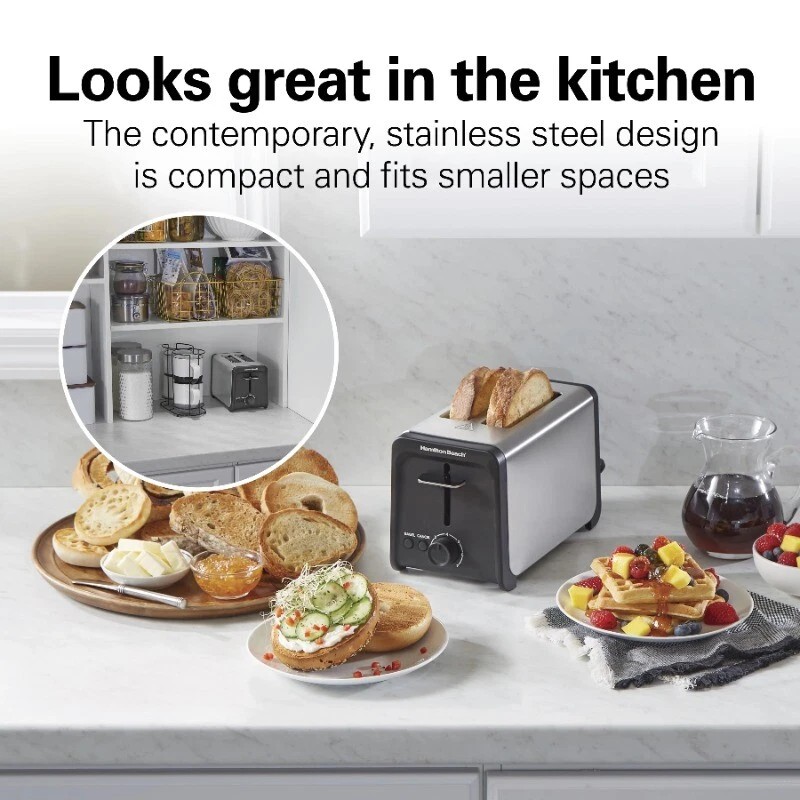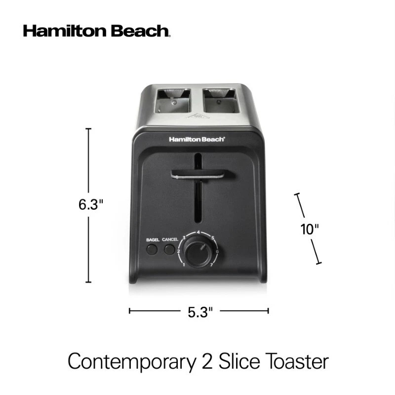 - Hamilton Beach 2 Slice Toaster with Wide Slots, Bagel Function, Toast Boost, Stainless Steel, New, 22997F