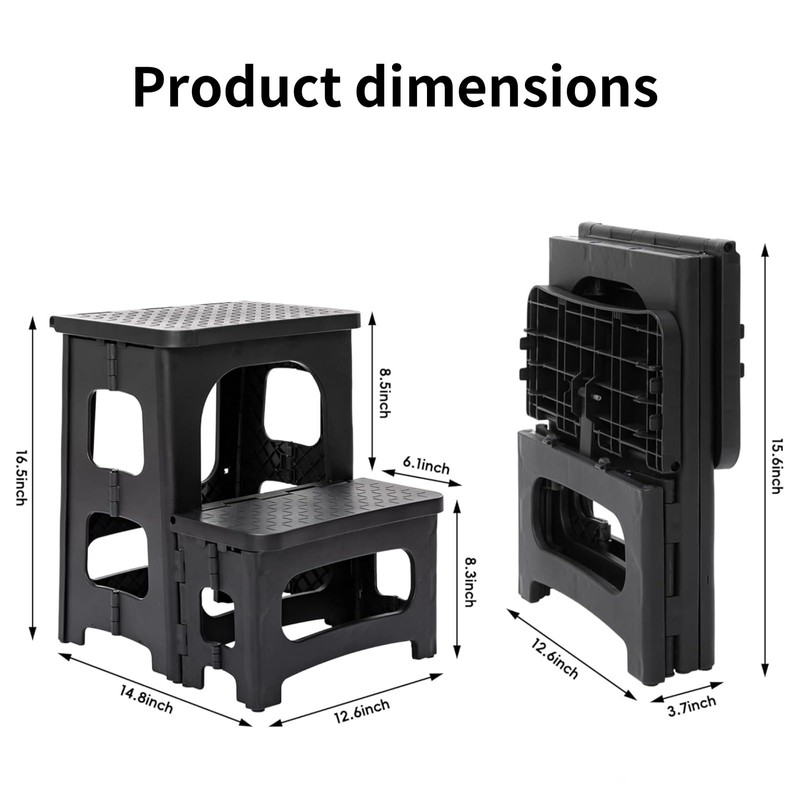 2-Step Folding Stool, Portable Bedside Step Stool, Non-Slip Folding Step Stool Plastic Steps Ladder, Hold up to 300 lbs, Lightweight & Foldable Step Ladder for Kitchen Toilet Office Home RV(Black)