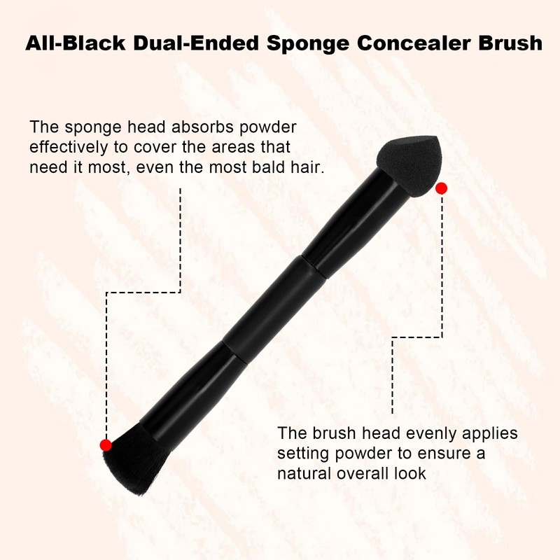 - Dual-Head-Design: Der sich verjüngende Schwammkopf absorbiert und lagert Präzisions-Haaransatzpulver effektiv genau, wo es benötigt wird, um Ausdünnbereiche oder Kopfhautlinien zu tarnen. Der weiche Nylonbürstenkopf mischt mühelos Pulver Make-up und verteilt Haaransatzpulver gleichmäßig für ein nahtloses, natürlich aussehendes Finish über größere Abschnitte.