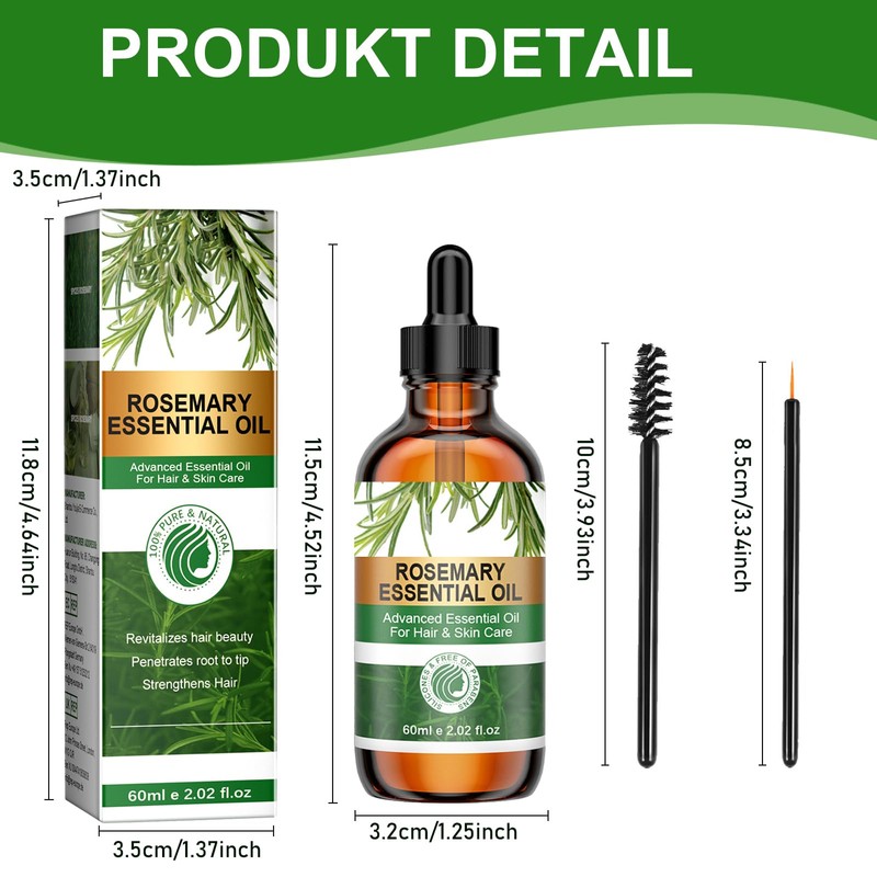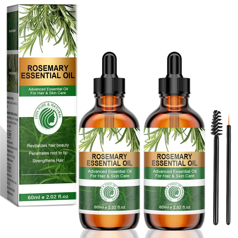 2 Stück ätherisches Rosmarinöl,Rosmarinöl Haare,Rosmarinöl für Haare und Kopfhaut, für Hautpflege, Aromatherapie and DIY, für Männer,Frauen(2 * 60ml)