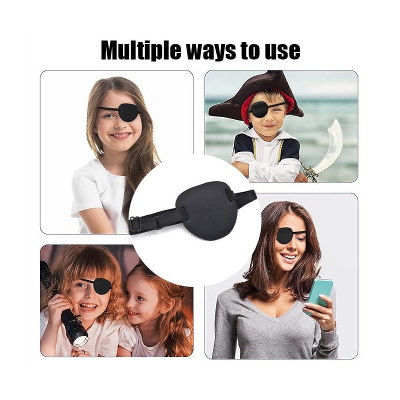 Diese Verstellbare Piraten Augenklappe eignet sich für die Augenpflege und die Anpassung von amblyopen Augen, auch geeignet für Piraten-Mottopartys, Geburtstagsfeiern, Kostümpartys, Schulaufführungen, Halloween, Weihnachten und andere festliche Veranstaltungen.