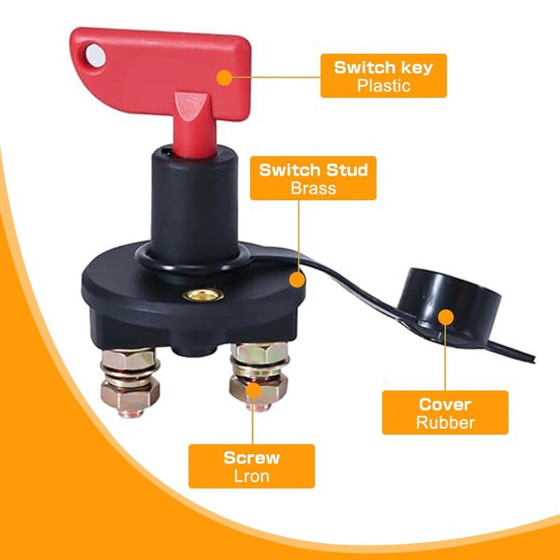 - ⚡【Effizienter Batterieschalter】Mit diesem Batterieschalter 12V/24V können Sie die Schaltung schnell abschneiden und wieder anschließen, wodurch der unnötige Batterieverbrauch effektiv reduziert und Stromeckagen verhindert wird. Die mitgelieferte wasserdichte Abdeckung kann das Schlüsselloch effektiv vor Staub und Wassertropfen schützen und seine Lebensdauer erheblich verlängern.