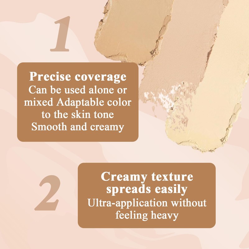 - Wasserdicht und Langlebig: Dieser gesicht concealer inhaltsstoff ist sanft und für alle hauttypen geeignet. Make up concealer kann fest auf der haut haften und hält auch bei heißem wetter lang anhaltendes make-up aufrecht, ohne sich um häufige nachbesserungen sorgen zu müssen.