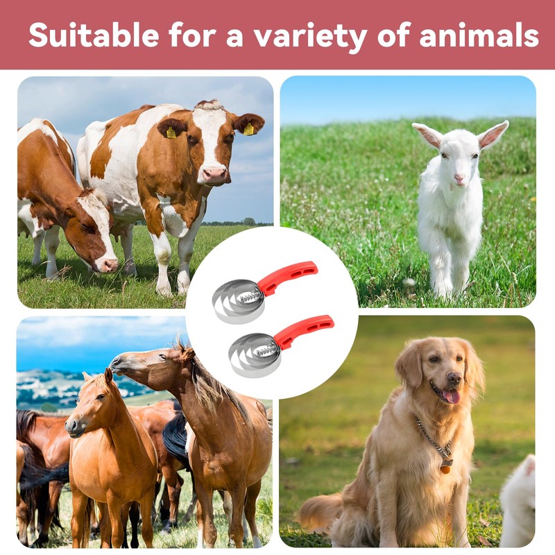 - 【Hochwertiges Material】 Die Pferdeputzzeug Kammzähne sind robust, verbiegen oder brechen nicht leicht und sind breit genug, um die Unterwolle großer Tiere effektiv zu entfernen. Die glatte Seite eignet sich für den täglichen Gebrauch, die scharfe Seite zum Entfernen von hartnäckigem Schmutz und Haaren.