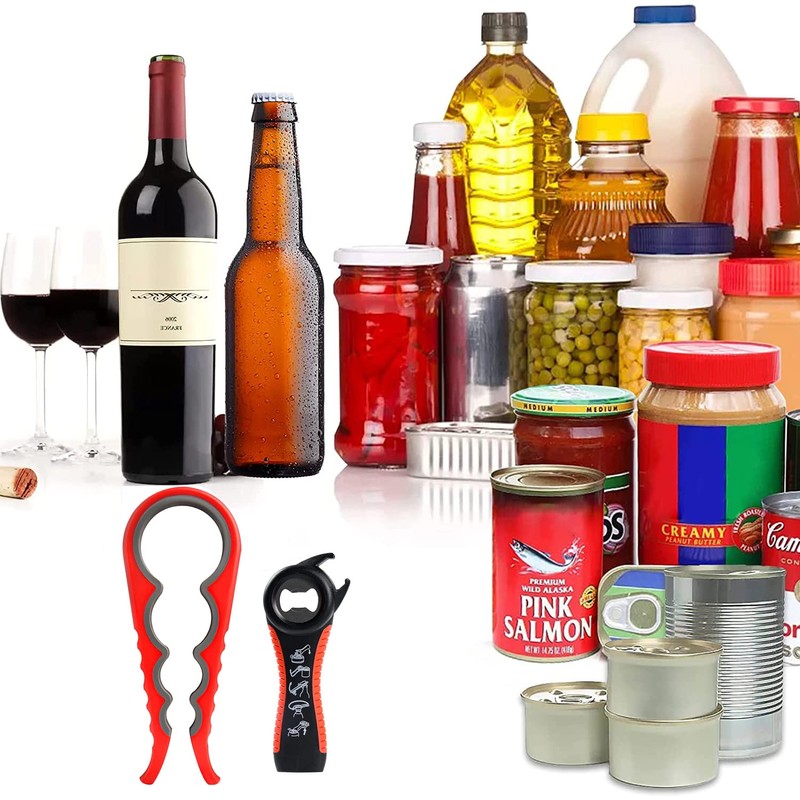 2 Stück Dosenöffner mit Verschluss, 5-in-1 Deckelöffner Schraubgläser & 4-in-1Glasöffner Schraubdeckelöffner, Flaschen und dosenöffner ideal für kinder, Senioren, Arthritische hände