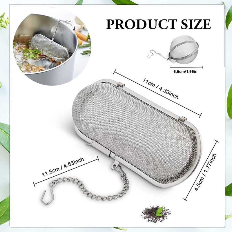 - 【Praktische Verschlüsse】Jedes Teesieb ist mit praktischen Verschlüssen und Ketten ausgestattet, damit der Inhalt beim Kochen oder Brühen nicht abfällt. So können Sie ein effizientes Filtererlebnis genießen