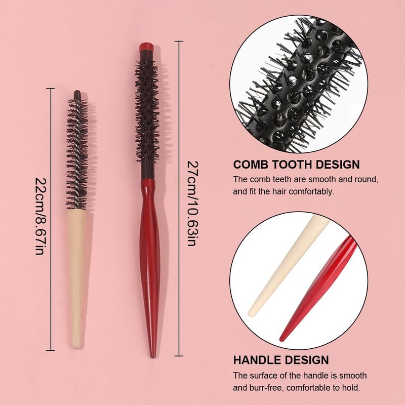 2 Stück kleine Rundbürste, Mini-Haar- und Bartbürste, Styling für dünnes Haar, Pferdeschwanz, Bart, Volumen, Locken