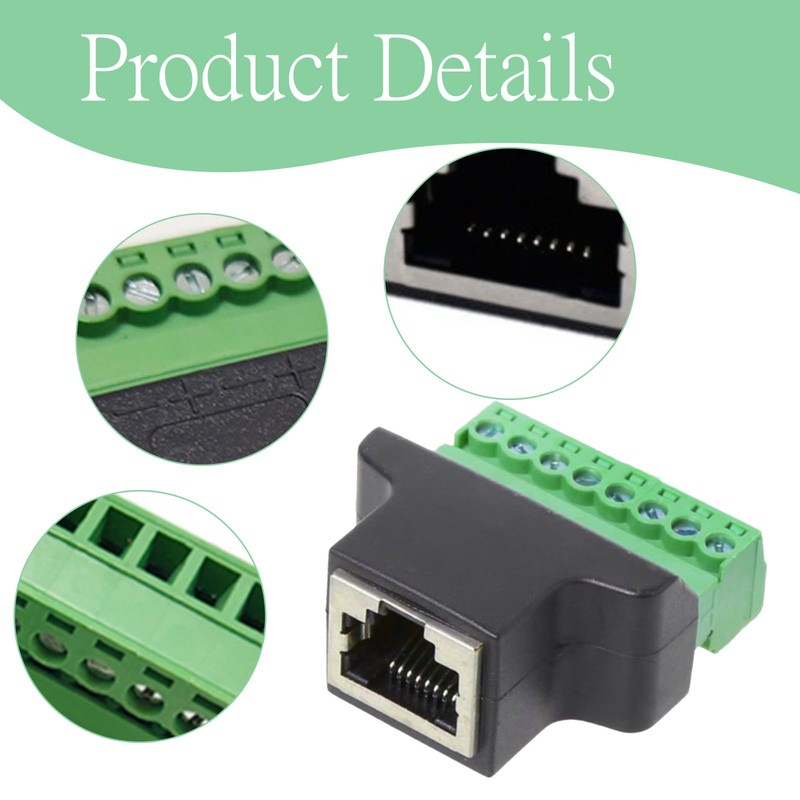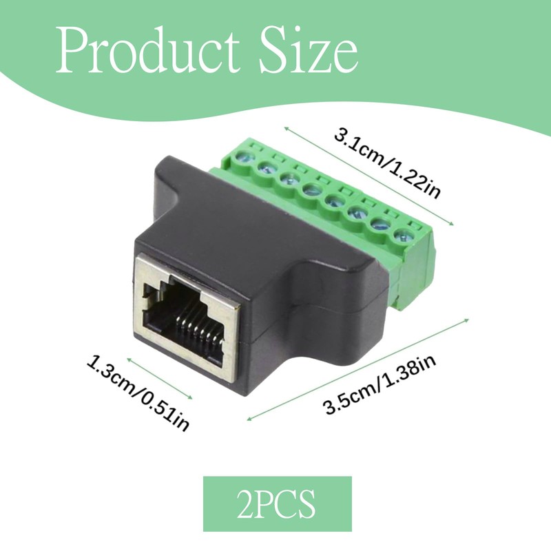 2 Stück RJ45 Schraubklemmenadapter,RJ45 Buchse auf Terminal Block 8-Pin Adapter,Ethernet Verbindungsstück,Geeignet für CCTV-Kamera,Digital DVR,Netzwerkgeräte