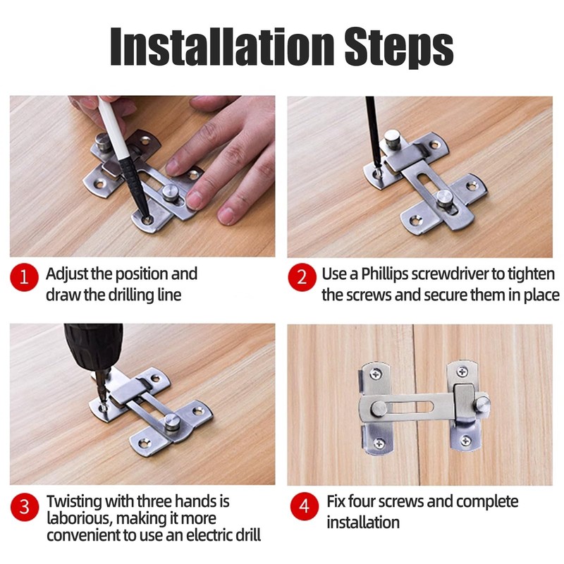 - 【Einfach zu installieren】: Sie müssen kein Heimwerkerexperte sein, um Türriegel Innen problemlos zu installieren. Einfach die vier Stellschrauben mit einem Schraubendreher oder Bohrer einsetzen und festziehen. Es gibt zwei Optionen für die Montagehalterung: linksöffnend oder rechtsöffnend.