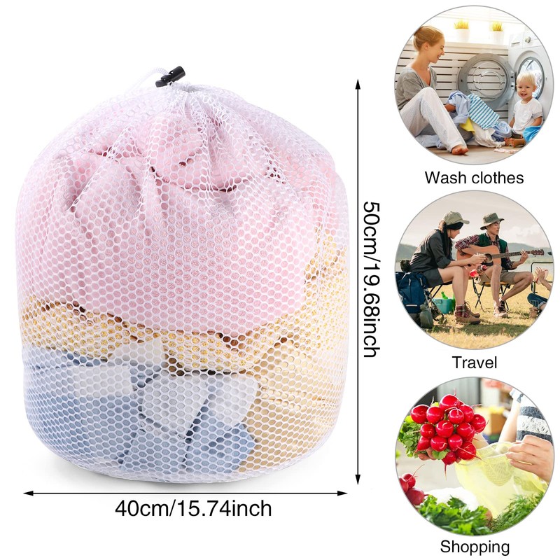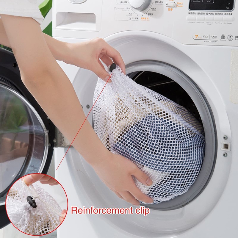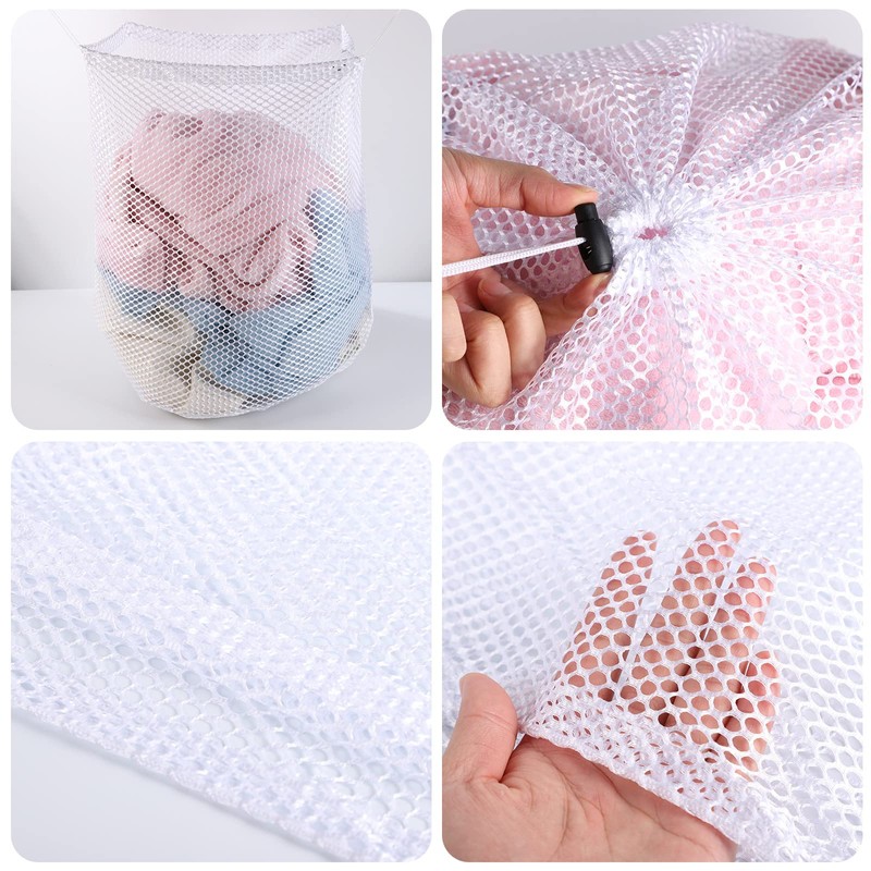 - 【Starker Kordelzug】Der mesh wäschesack ist mit einem Kordelzug ausgestattet, der Ihnen das Aus- und Anziehen Ihrer Kleidung erleichtert. Der verstärkte Druckknopf macht den Verschluss sicherer und verhindert das Herausrutschen der Wäsche aus dem Wäschesack.