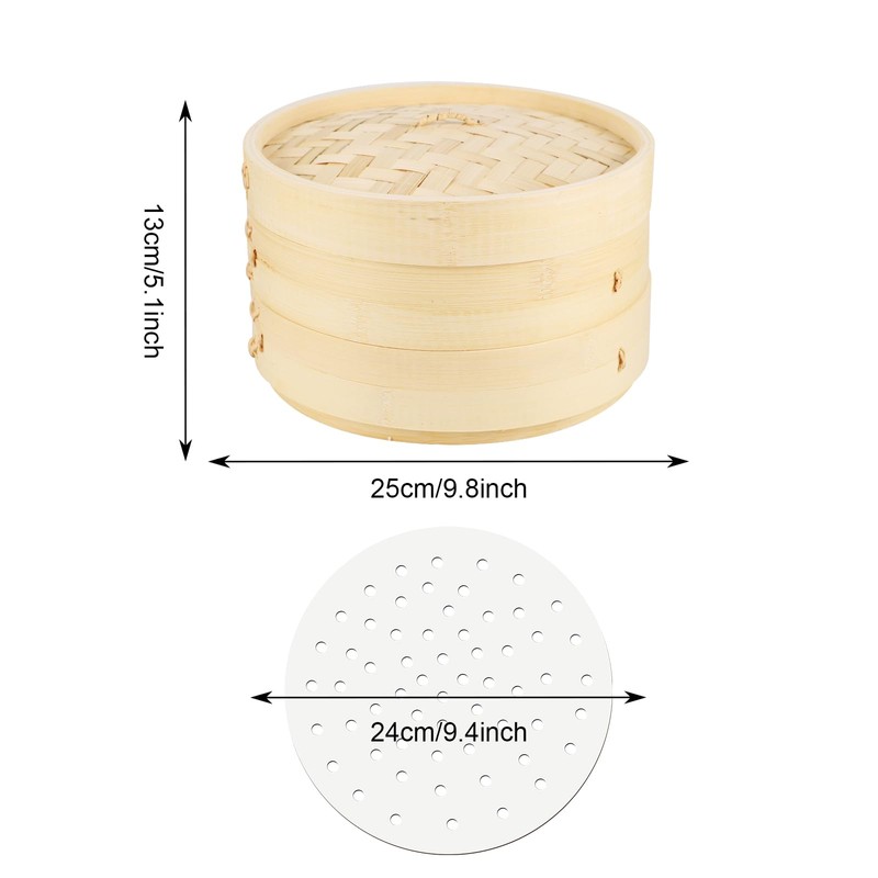 - Premium Quality: Our vegetable steamer basket is made of carefully selected natural bamboo, processed by hand cutting and weaving. Premium bamboo with better flexibility, and smooth without burrs, leaves a bamboo fragrance when cooking food. The food-grade steamer paper is high-density, double-sided non stick, and can be used for high-temperature steaming and baking