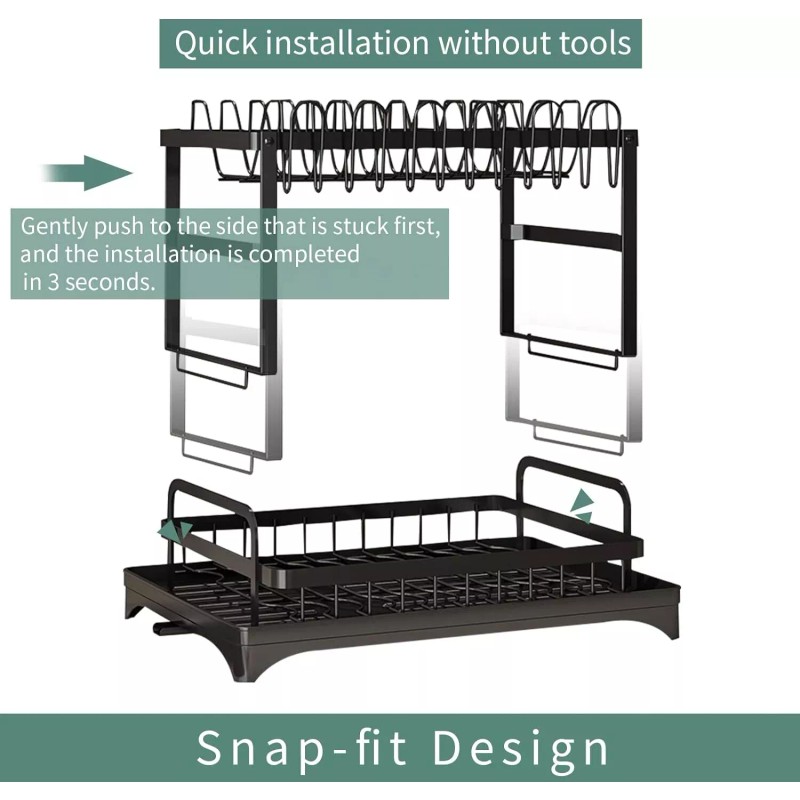 【Easy to Assemble】No other tools are needed, you can easily assemble the dish rack drainer together. Just follow the help of the installation manual. All parts needed are included. The draining tableware rack is detachable and easy to clean.