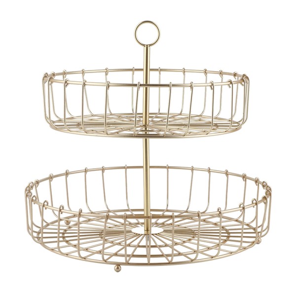 2 Tier Fruit Basket Iron Round Golden Nordic Household Snack Storage Tray for Party Desktop Kitchen
