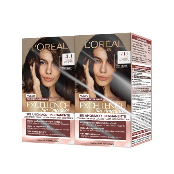 2 Tintes para Cabello Excellence sin Amoniaco de L'Oréal Paris Tono 4U Castaño Universal