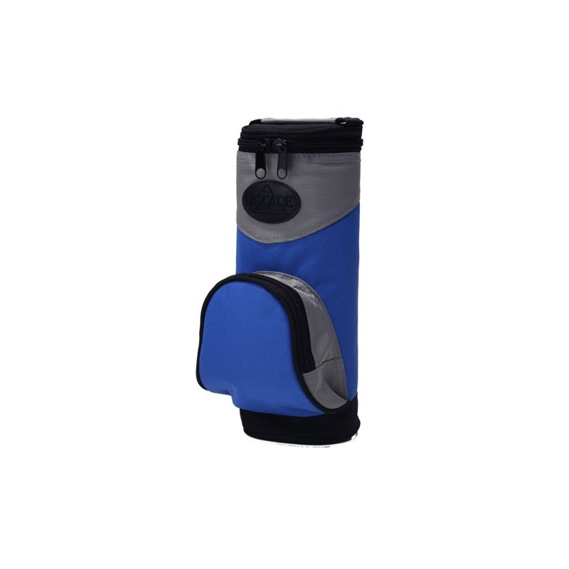 2-To-Go Zippered Beverage Cooler with Shoulder Strap, Clip, and Front Pocket, Blue/Grey