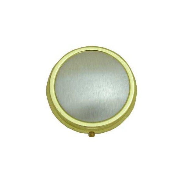 - This round pill box is made of chrome plated iron with silver brushed finish domed top and gold tone body.