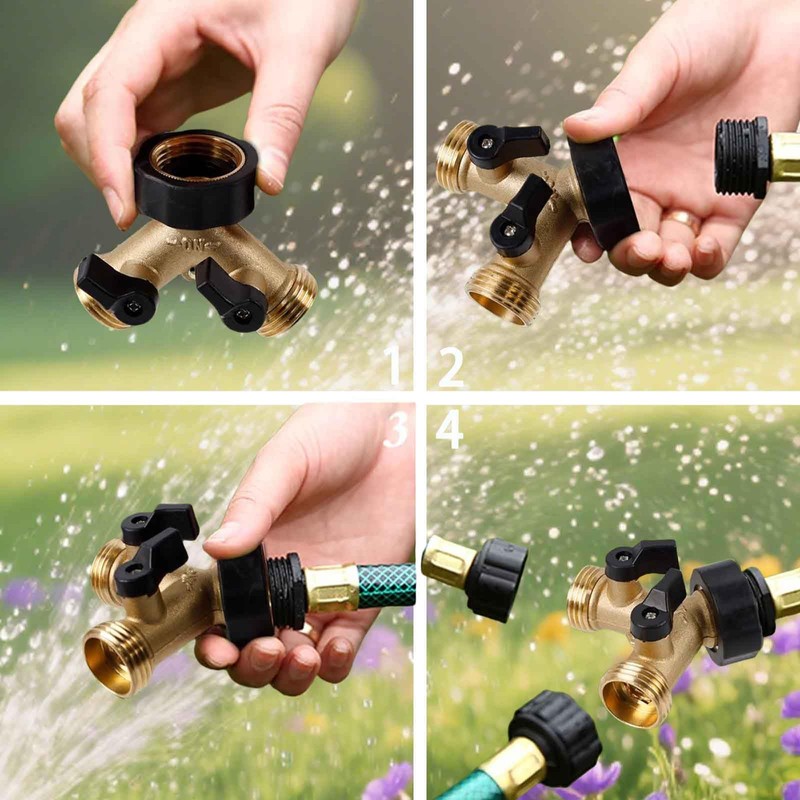 - ALL IN ONE PACKAGE: 1 x 3/4" Full Brass 2 Way Y Splitter, 2 x 3/4" Brass Quick Connectors, 1 x 3/4" to 1/2" Adapter, 8 x Sealing Washers, 2 x Sealing PTFE Tape.
