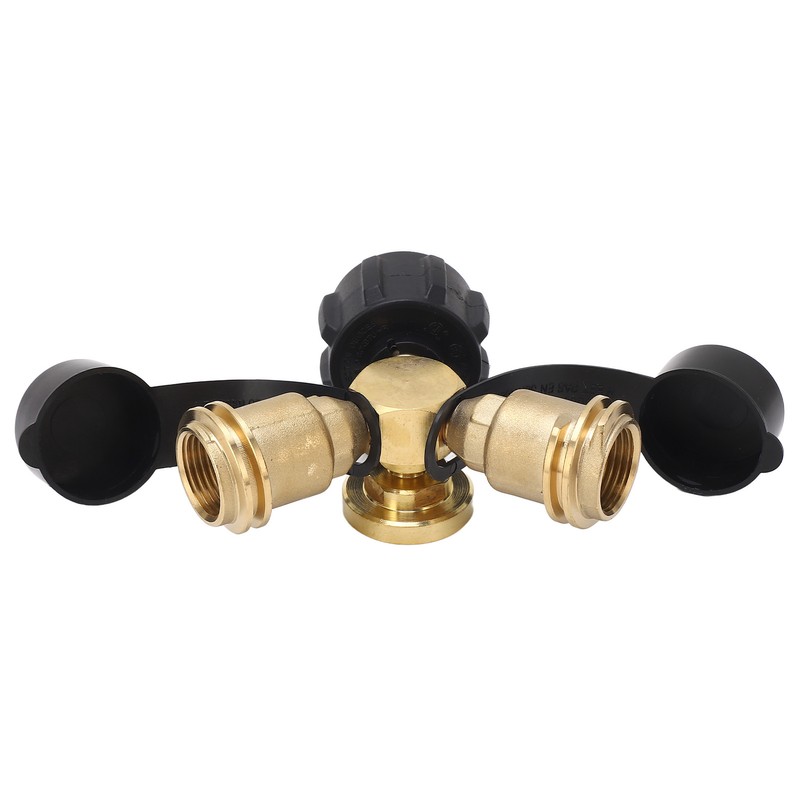 2 Way Propane Gas Splitter Brass POL to Qcc1 Y Type Propane Splitter with Gauge for Barbecue Grill Heaters