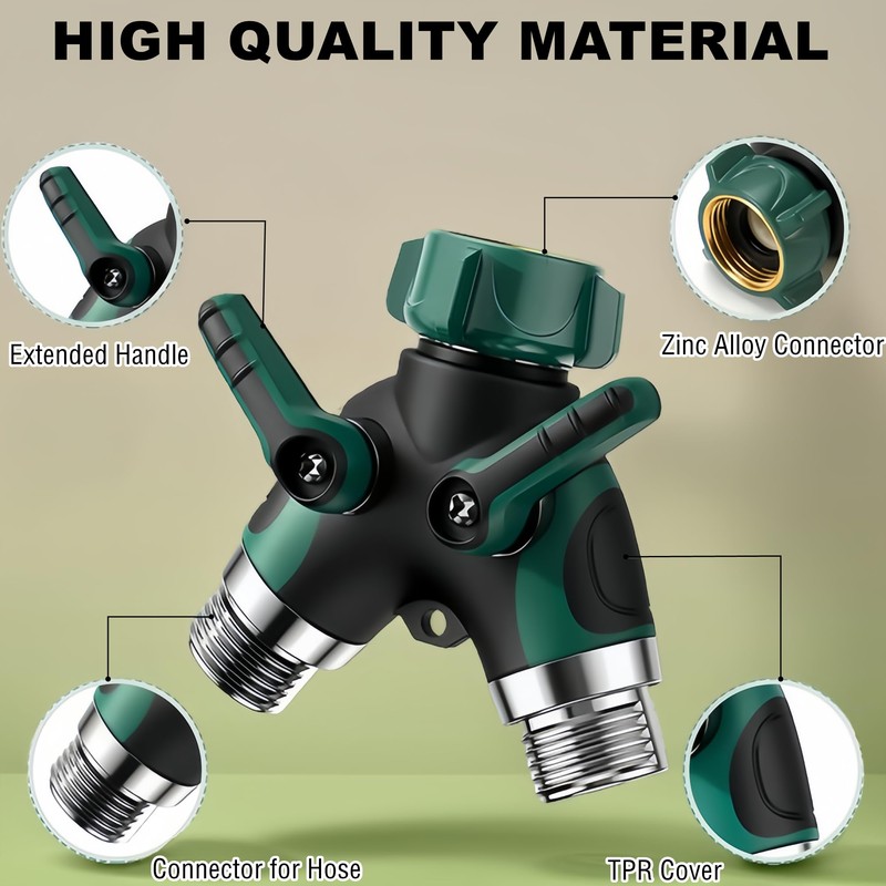 - Tap splitter: our 3/4 inch tap Y splitter has an extended handle for ergonomic comfort and easy operation. Each distribution has a separate valve control that is operated if necessary without disturbing each other.