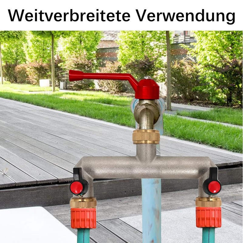 2 Wege Wasseranschluss Verteiler Hahnverbinder, Garten Wasserhahn Wasserverteiler aus Messing, 3/4 Zoll Schlauchanschluss, 2er Adapter 1/2 mit Kugelhahn für Garten Bewässerung System