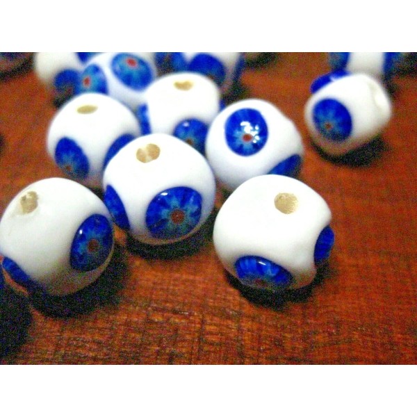 2 White MURANO Glass Beads 10 mm - 7/16 in w 5 layer Red Flower Insert