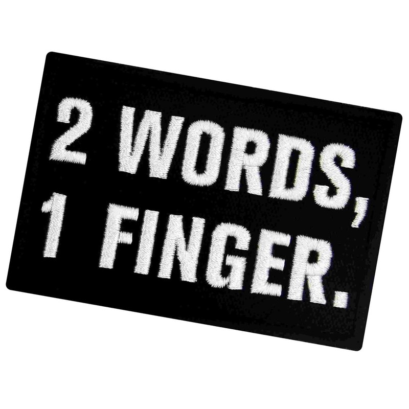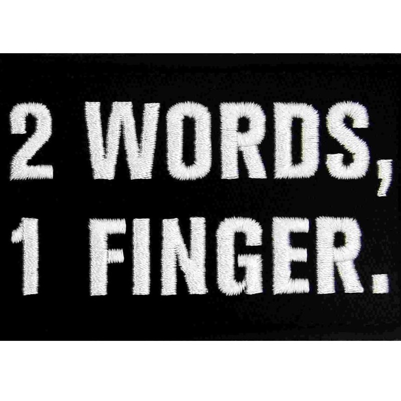 2 Words 1 Finger Patch Embroidered Badge Biker Applique Fastener Hook & Loop Emblem