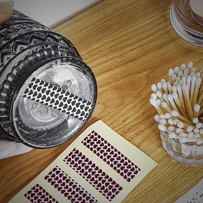 From the sheet, each striker can be easily peeled and applied to your surface of choice. The adhesive will affix to most materials and stays put even when placing over previously worn strikers. Simply peel and stick to surfaces of bottles, jars, and containers such as glass, tin, wood, plastic, brick, ceramic, etc. Even sticks over strike surfaces previously used up!