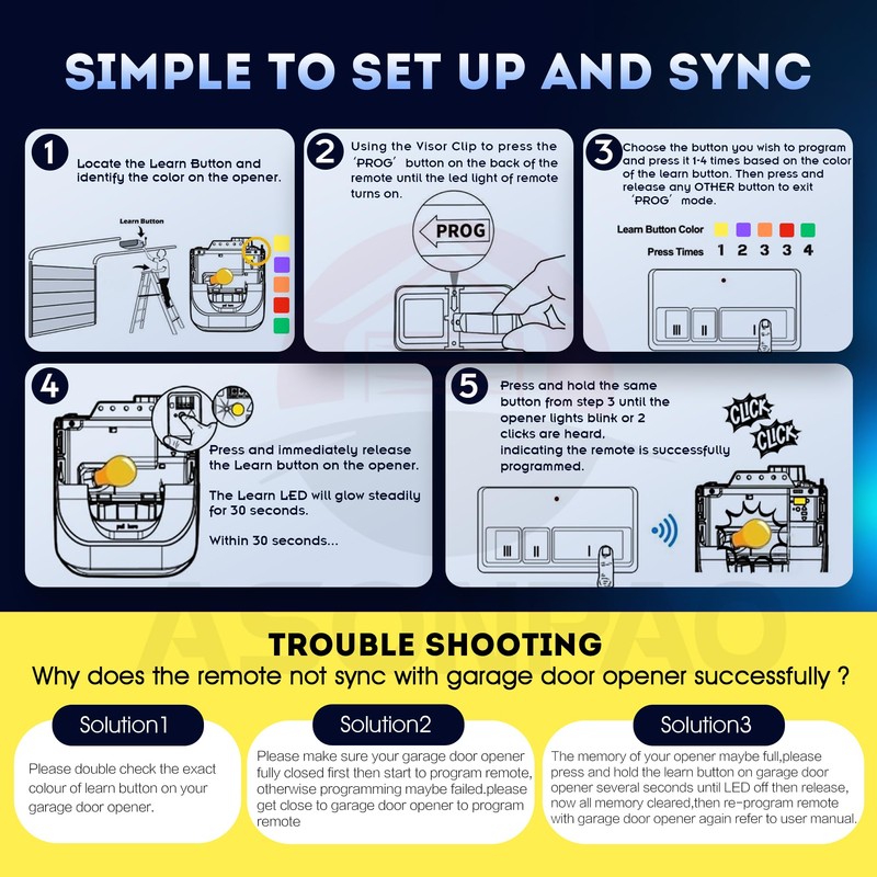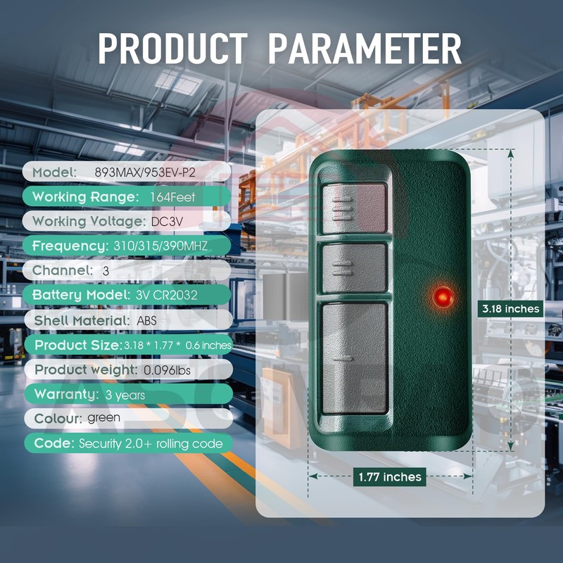 - **Easy to use**: Enjoy a 164-foot control range and easily pairing with your garage door motor. Its compact design is ideal for your car's sun visor for easy access.