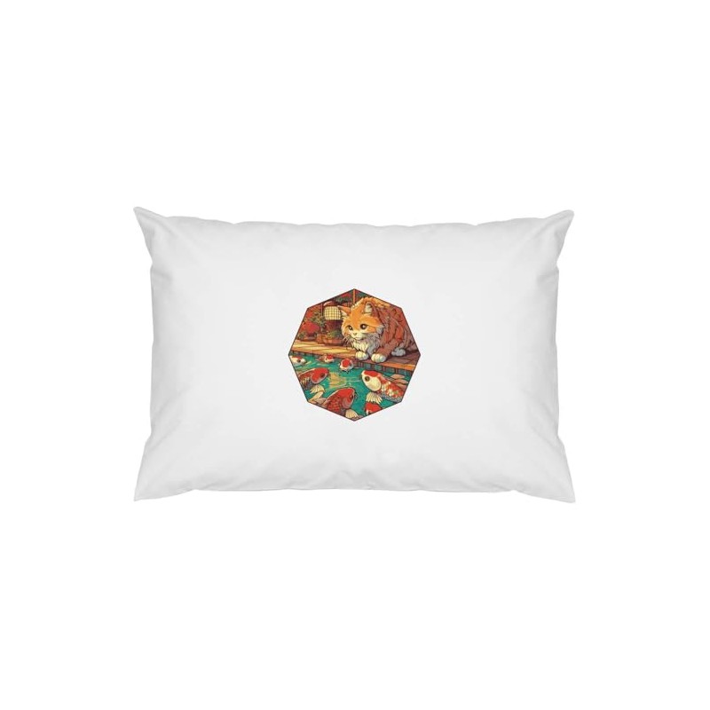 2 x 'Anime Cat With Fish Pond' Cotton Pillow Cases (PW00038792)