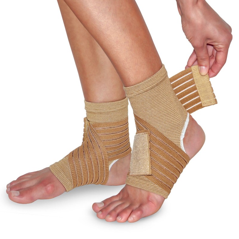 2 x Ankle Braces with Drawstring for Stabilisation and Relief - Beige