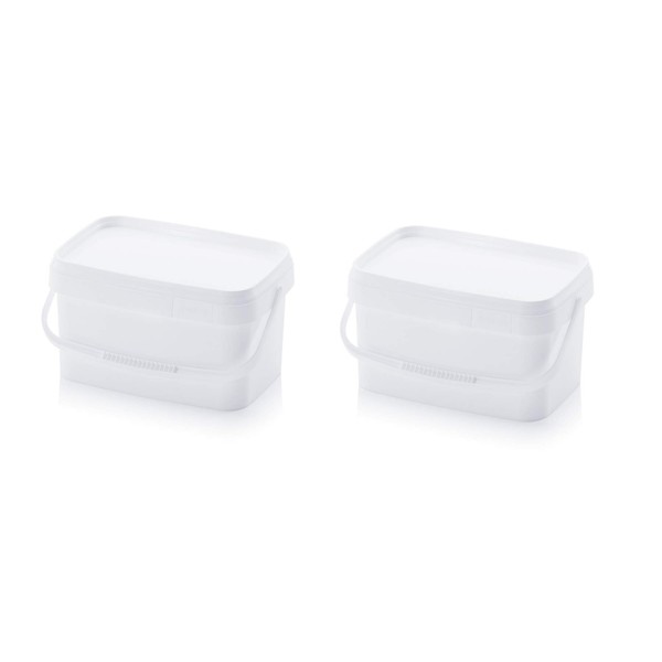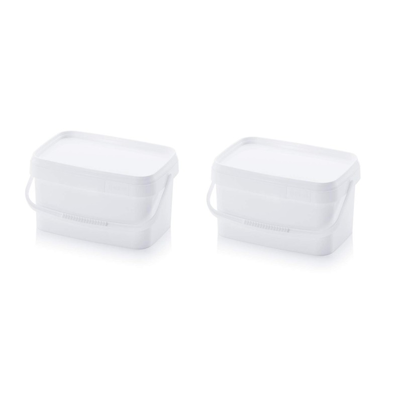 2 x Buckets 5.6 L Rectangular x 5 L Food Safe Stackable Plastic Bucket 5 Litres White