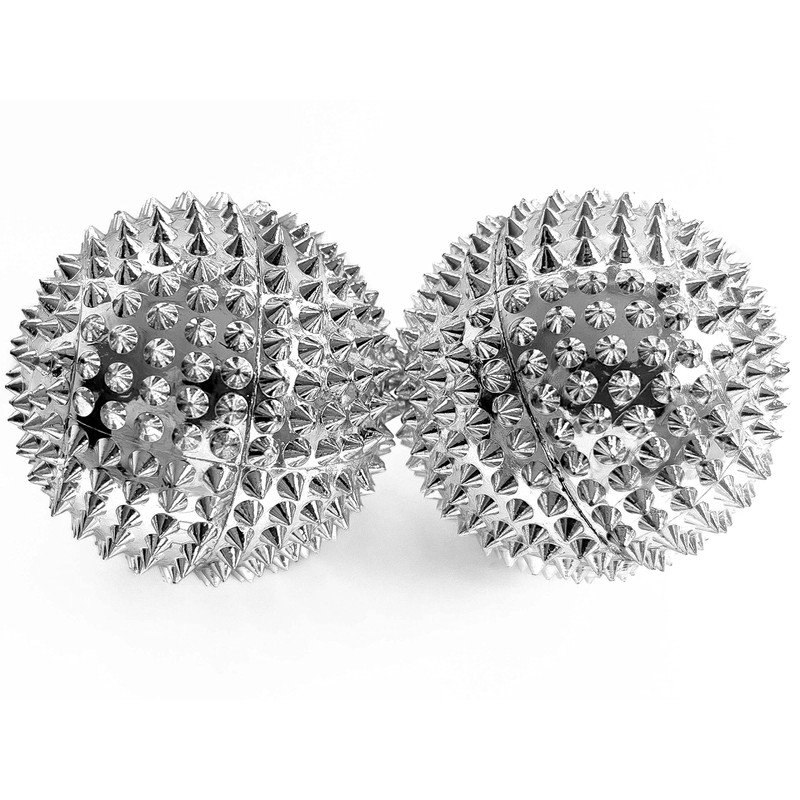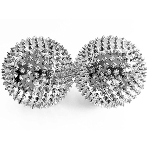2 x DBT Skills Hedgehog Ball Magnetic High Stress Acupressure Ball for Stress Relief or Massage Against Tension and for More Mobility and Concentration (Silver)