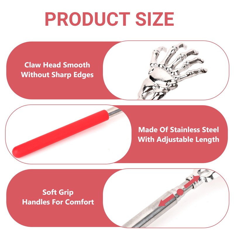 - ADJUSTABLE TELESCOPIC DESIGN - This length adjustable back scratcher allows you to easily reach hard-to-reach areas, providing instant relief from itching no matter your size.