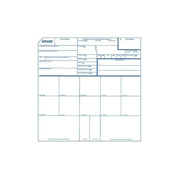2 X Fingerprint Cards, Applicant FD-258, 5 Pack by Fingerprint Depot