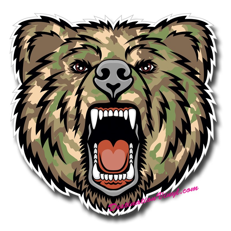 2 x Glossy Vinyl Stickers - Army Camo Angry Bear Cool Laptop Decal #0134 (As shown.)
