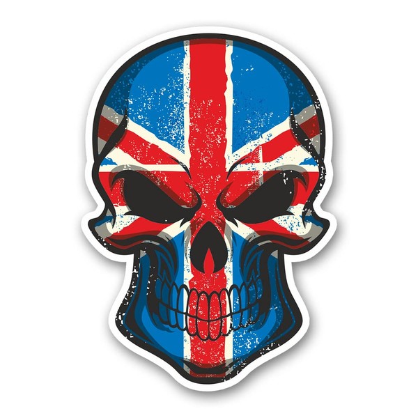 2 x Glossy Vinyl Stickers - Union Jack Flag Skull Funny Laptop Decal #0105 (As Shown.)