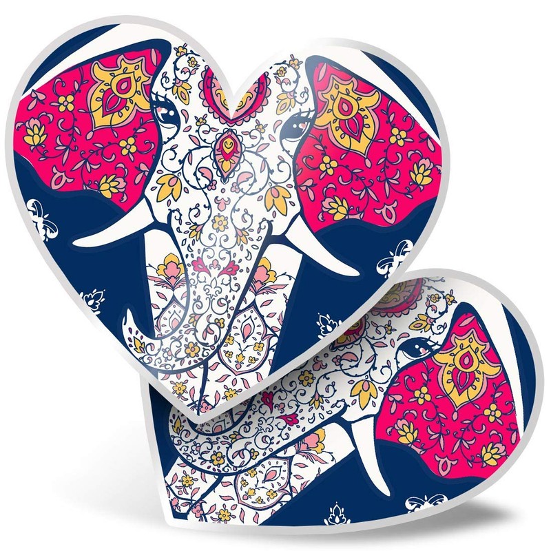 2 x Herz-Aufkleber 15 cm – Mandala-Elefant im indischen Stil, lustige Aufkleber für Laptops, Tablets, Gepäck, Scrapbooking, Kühlschränke, 2852