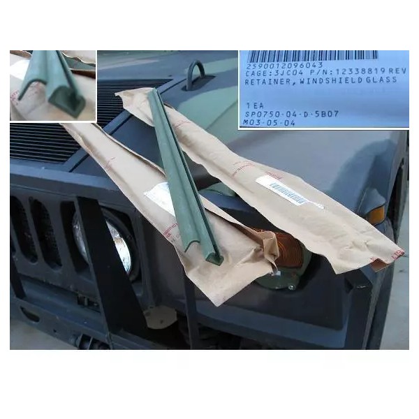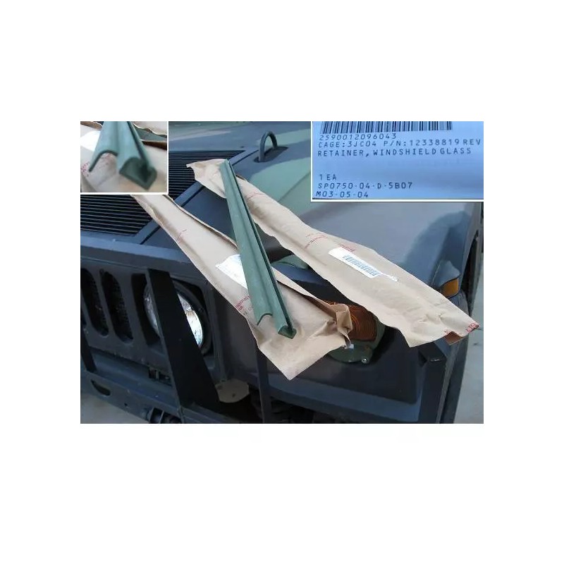 This listing is for 2 x brand new HMMWV 5/8" windshield retainers. These HMMWV windshield retainers are aluminum and brand new in the bag from AM General. These retainers each measure 37" long x 1" wide. The sticker on each bag is marked... 2590--01-209-6043 CAGE: 3JC04 P/N: 12338819REV: RETAINER, WINDSHIELD GLASS 1 EA SPO750-04-D-5B07 M03-05-04