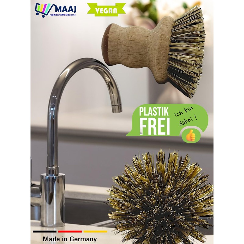 2 x MAAJ Pot Brushes Natural Hard Union Bristles – Made in Germany – Vegan – Plastic-Free