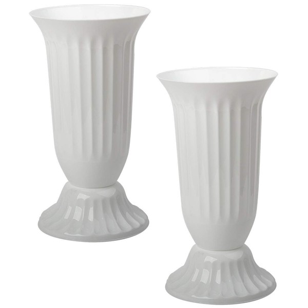 2 x Outdoor Vase for Garden or Grave in Round Shape Very Robust Plastic with Removable Stand Base