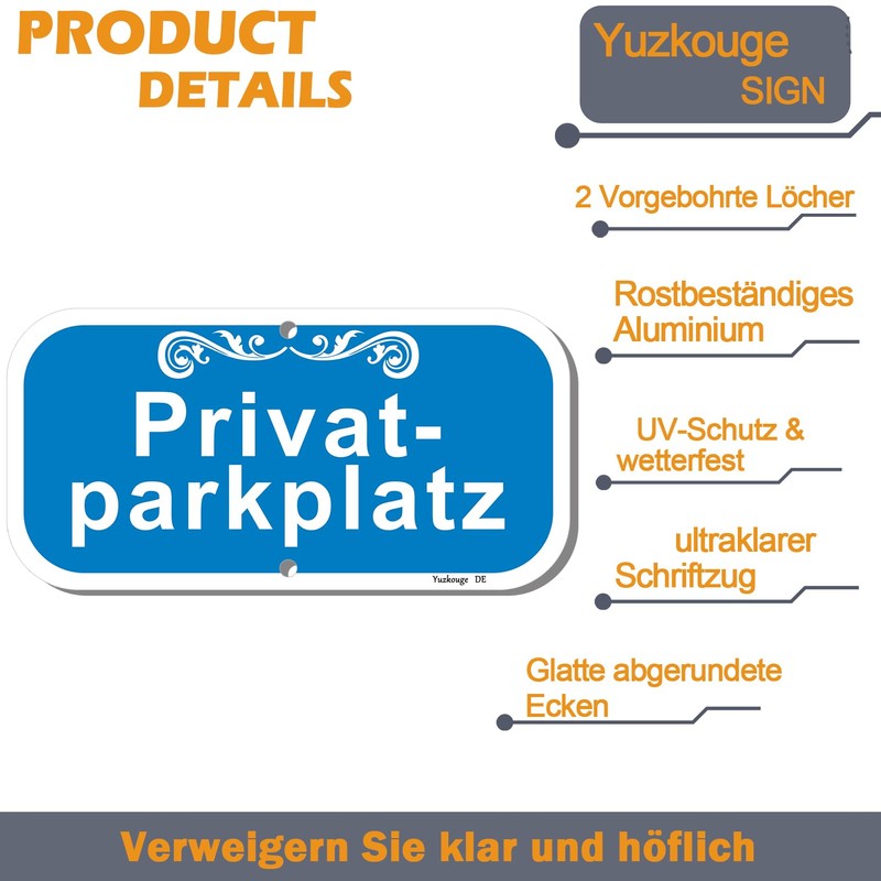 - The package includes 2 private parking signs. The signs have 2 pre-drilled holes and can be easily mounted on any surface.