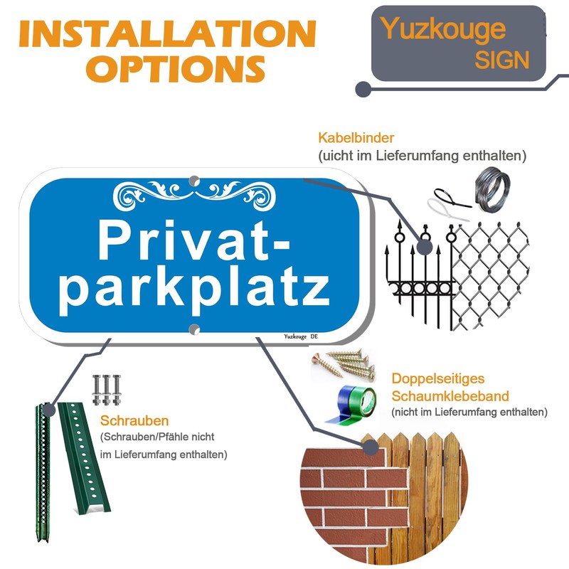- The package includes 2 private parking signs. The signs have 2 pre-drilled holes and can be easily mounted on any surface.