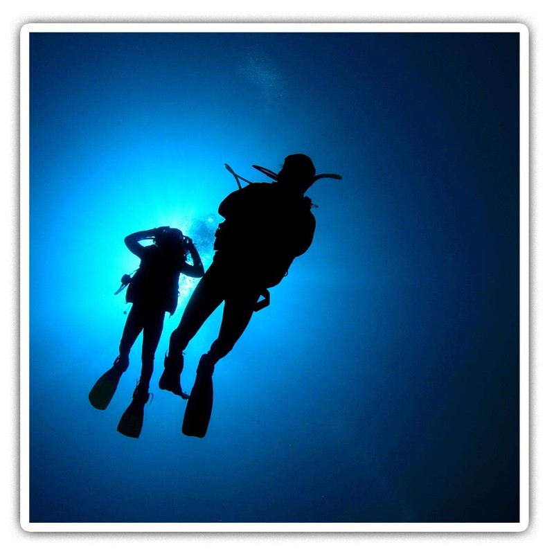 2 x quadratische Vinyl-Aufkleber, 10 cm, Motiv: Taucher-Silhouette, Taucher, Meer 8344