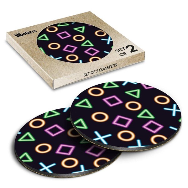 2 x Round Coasters - Gamer Buttons Gaming Computer Console Cork Backed MDF Glossy Tea Coffee Accessory #170580