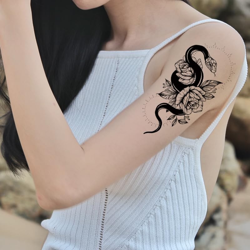 2 x Snake and Roses Tattoo Festival Tattoo Temporary Tattoo Fake Tattoos XQB453 455