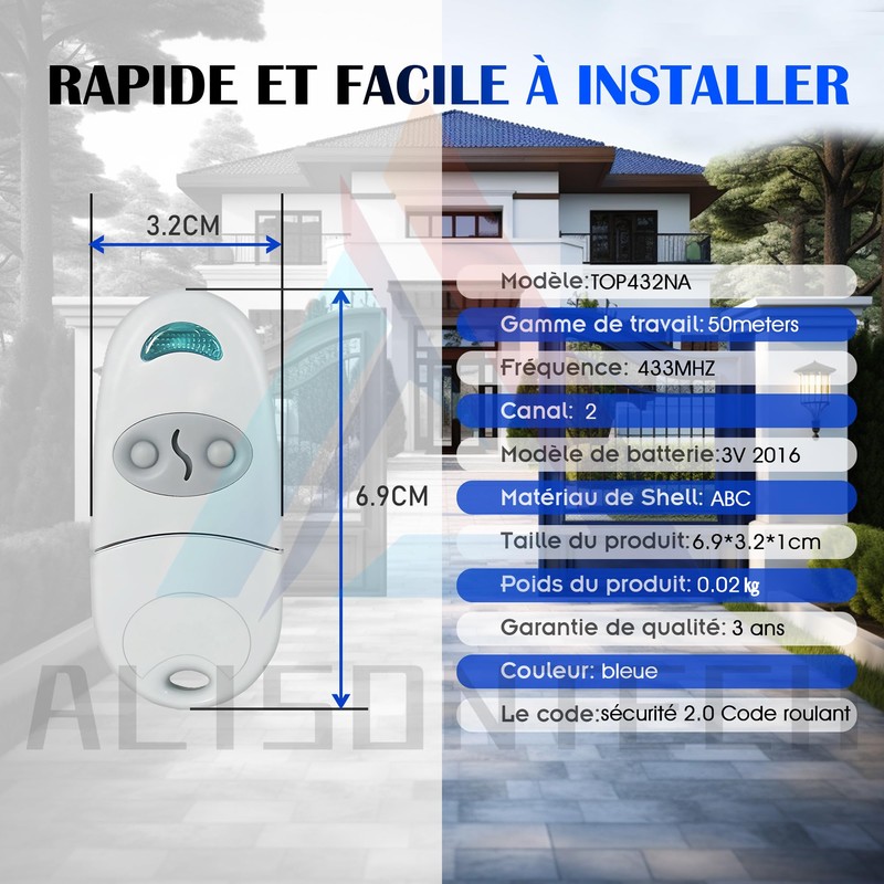 - **Enhanced Security**: 433.92MHz Rolling Code Technology generating new codes for each use, preventing theft.